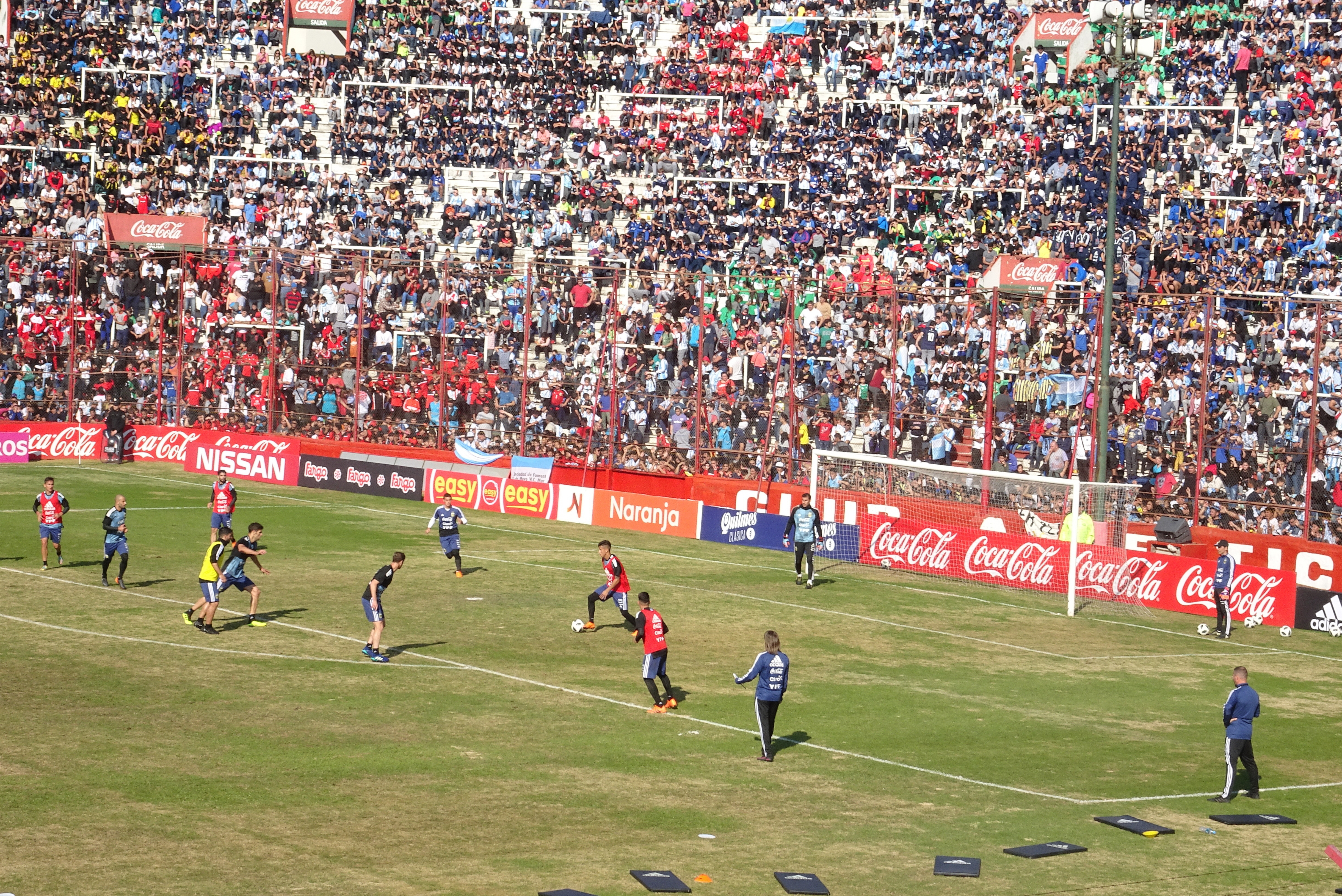 En las adyacencias del Palacio Ducó se veían unas decenas de colectivos naranjas y transportes escolares y algunos chicos que corrían con banderitas albicelestes. Pero desde adentro del estadio de Huracán no se escuchaba nada, ni estridencias ni gritos. La modorra dominical parecía hacer efecto en más de 30 mil chicos juntos, hasta que casi a las 11 horas, después de más de una hora de espera, estallaron en entusiasmo.