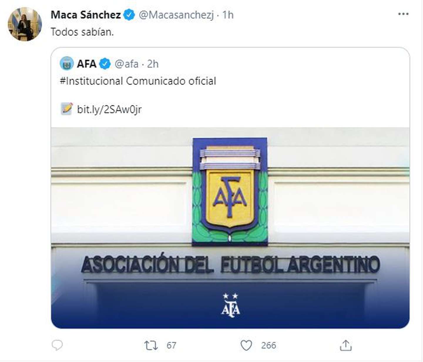 El comunicado de la AFA que generó la respuesta de Maca Sánchez