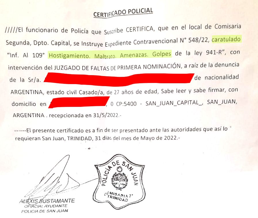 El empleado le expuso las condiciones en las que trabajaba, realizando jornadas de más de 12 horas sin franco y con la mayoría de las horas sin declarar, en ese instante -según el denunciante- es que Aguilar pierde el control de la conversación y empieza a insultarlo y agredirlo, alegando que "no estaba en su mejor día y que estaba cansado de todo, colmado de reclamos por parte empleados". Inmediatamente el empleado dio aviso a la Policía y dejó una exposición en la Comisaría Segunda.