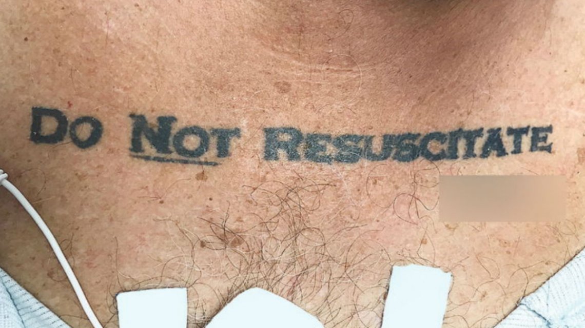 “No resucitar”, así decía el tatuaje que un hombre tenía en el centro del pecho. Se trata de un paciente que ingresó de urgencia a un hospital de Miami, ya que padecía una enfermedad pulmonar obstructiva crónica, diabetes mellitus y fibrilación auricular.