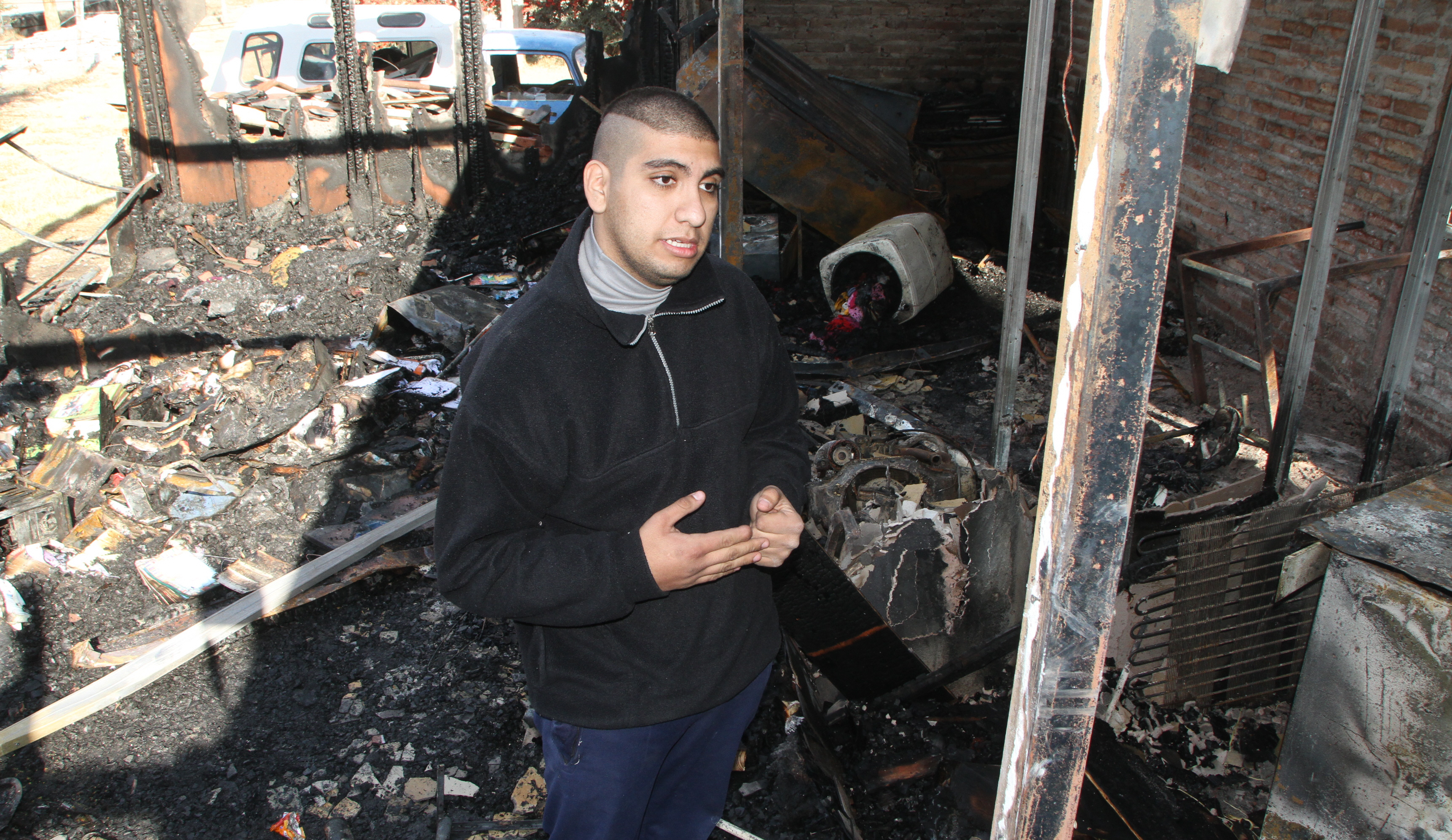 Nahuel Huaquinchay (22) deambula entre las cenizas y la chatarra de lo que alguna vez fue su hogar. La futura cicatriz de un corte en su brazo le recordará de por vida el día en que un devastador incendio destruyó su casa. Y no sólo eso, porque también echó a perder todas las cosas del merendero comunitario que allí funcionaba, en el que además de nutrir a los chicos del barrio, hacía las veces de contención para quien se acercara por una copa de leche.