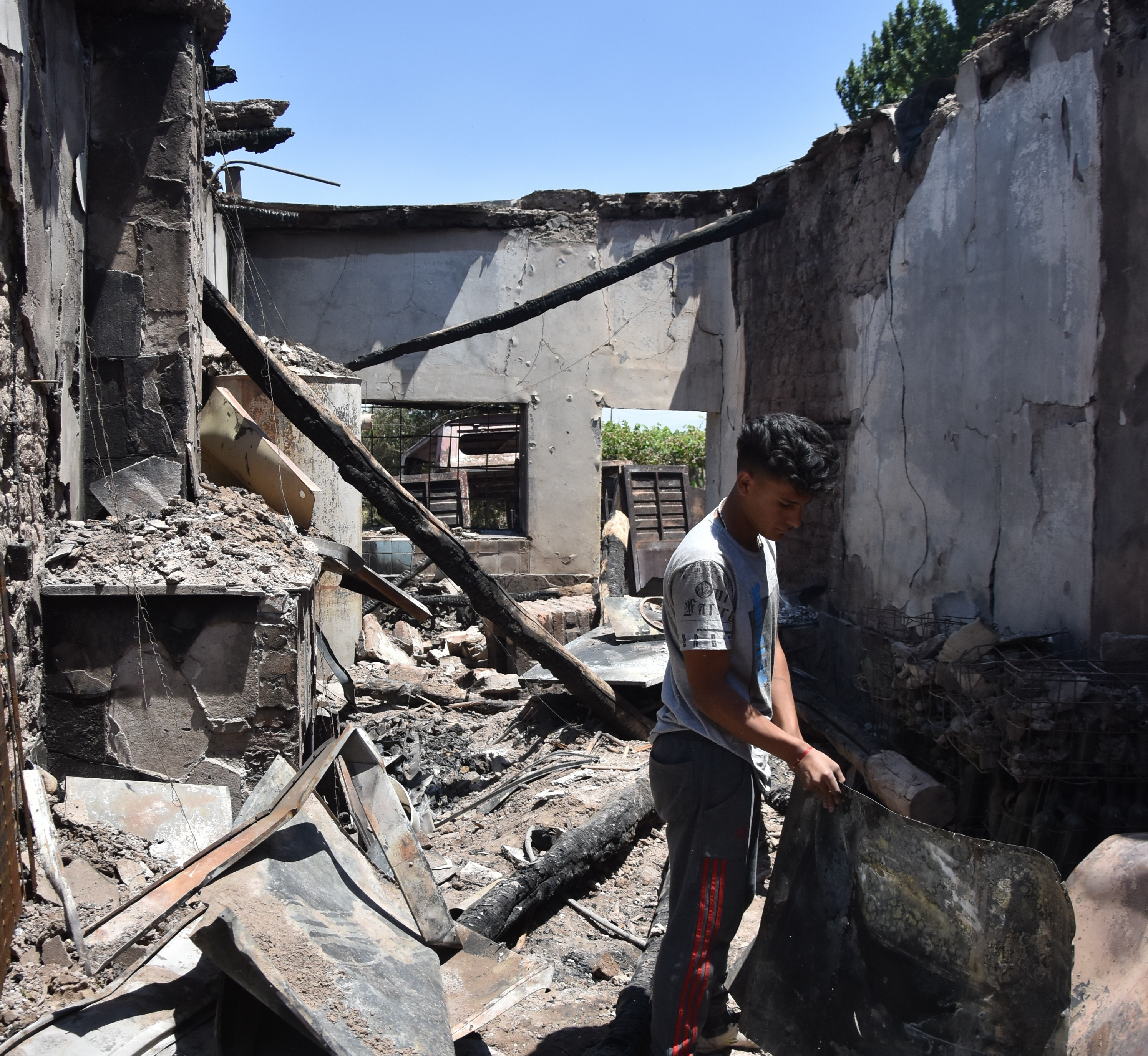 Un gran perjuicio causaron las llamas que arrasaron con cepas de un parral, pasaron a un viejo camión y dos acoplados, y luego a la gran galería y las habitaciones de la casa, que quedó inhabitable. Allí le prestaban para vivir a Patricia Frías, si alguien desea colaborar con su familia puede llamar al 2645323150.