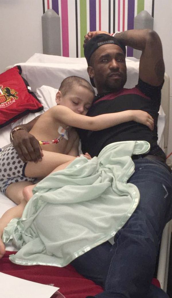 La imagen comenzó a recorrer el mundo y genera una ternura descomunal. El joven luchador se abrazó con fuerza de Jermain Defoe y se quedó dormido en la cama del hospital. Sebastian Larsson, Vito Mannone y John O’Shea fueron los otros jugadores que estuvieron en la visita."Bradley está bien y se ha animado después de tener visitas muy especiales. Gracias al Sunderland. Ha sido increíble para Bradley. Tuvo un montón de diversión con los chicos y luego se durmió abrazando a Jermaine", escribió su familia junto con las fotos en la cuenta de Facebook desde la que retratan la batalla de su hijo contra este tipo de cáncer extraño.