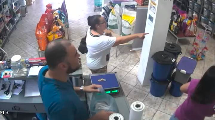 La grabación, compartida en Facebook, muestra la estancia de una veterinaria con dos clientas en el interior. El encargado de la tienda despacha a una de las mujeres, mientras la otra coloca las cosas en la bolsa. Ya con los productos que iba a comparar listos, la mujer saca efectivo de su cartera para pagar el producto y lo pone sobre la báscula. Hasta aquí todo bien.