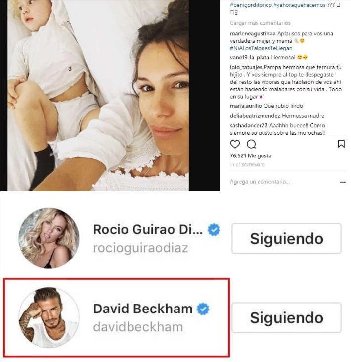 Sorprendió también que la foto que le gustó a Beckham es una súper casera, de Pampita con su pequeño hijo Benicio, cuando su cuenta está lleno de fotos hot, en bikini y de producciones.