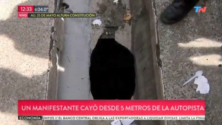La caída se produjo en la autopista 25 de Mayo, a la altura de San Juan, cuando el piso de un sector del camino cedió tras un salto del manifestante.