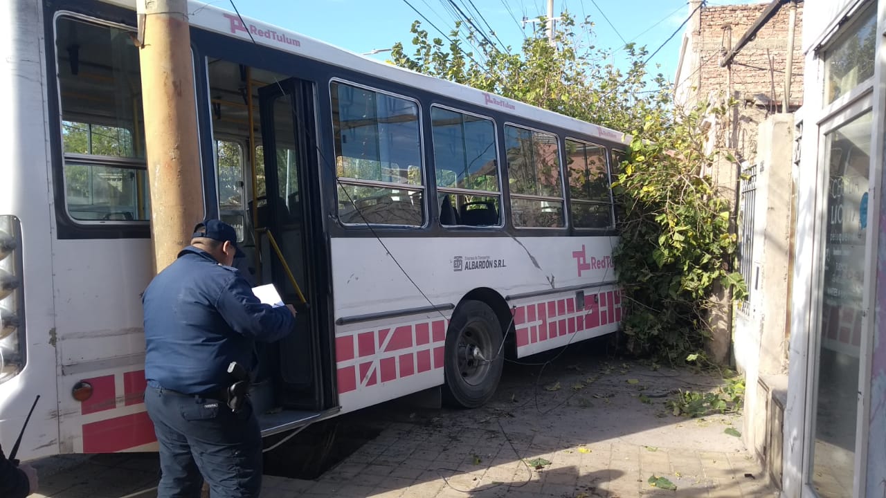 Un colectivo de la empresa Albardón quedó literalmente en la vereda de una vivienda e impactó contra la pared. El hecho ocurrió este domingo en la mañana, en la zona de Mendoza y Maipú, en Capital.