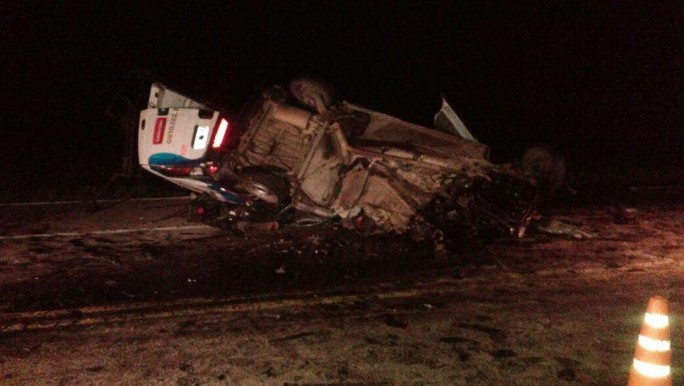 Según La Gaceta Salta, ambos vehículos chocaron de frente: el utilitario quedó detenido en medio de la ruta oscura mientras el colectivo volcó y quedó recostado sobre el lateral derecho, en la banquina.