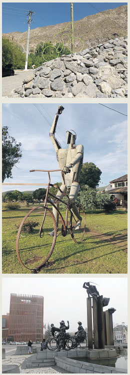 A modo de ilustración adjunto a este escrito fotos del monumento actual sobre la Ruta 12 (arriba) y de dos monumentos más, uno de ellos construidos en la localidad de La Cumbre, en la provincia de Córdoba (al centro), donde se realiza anualmente el “Desafío del Río Pinto”, con la participación de miles de ciclistas de nuestro país y países vecinos. La otra foto corresponde al “Monumento a la familia ciclística” (abajo) levantado en la ciudad de Brujas, Bélgica, donde la bicicleta ocupa un importante lugar en el sistema de transporte de esa ciudad.