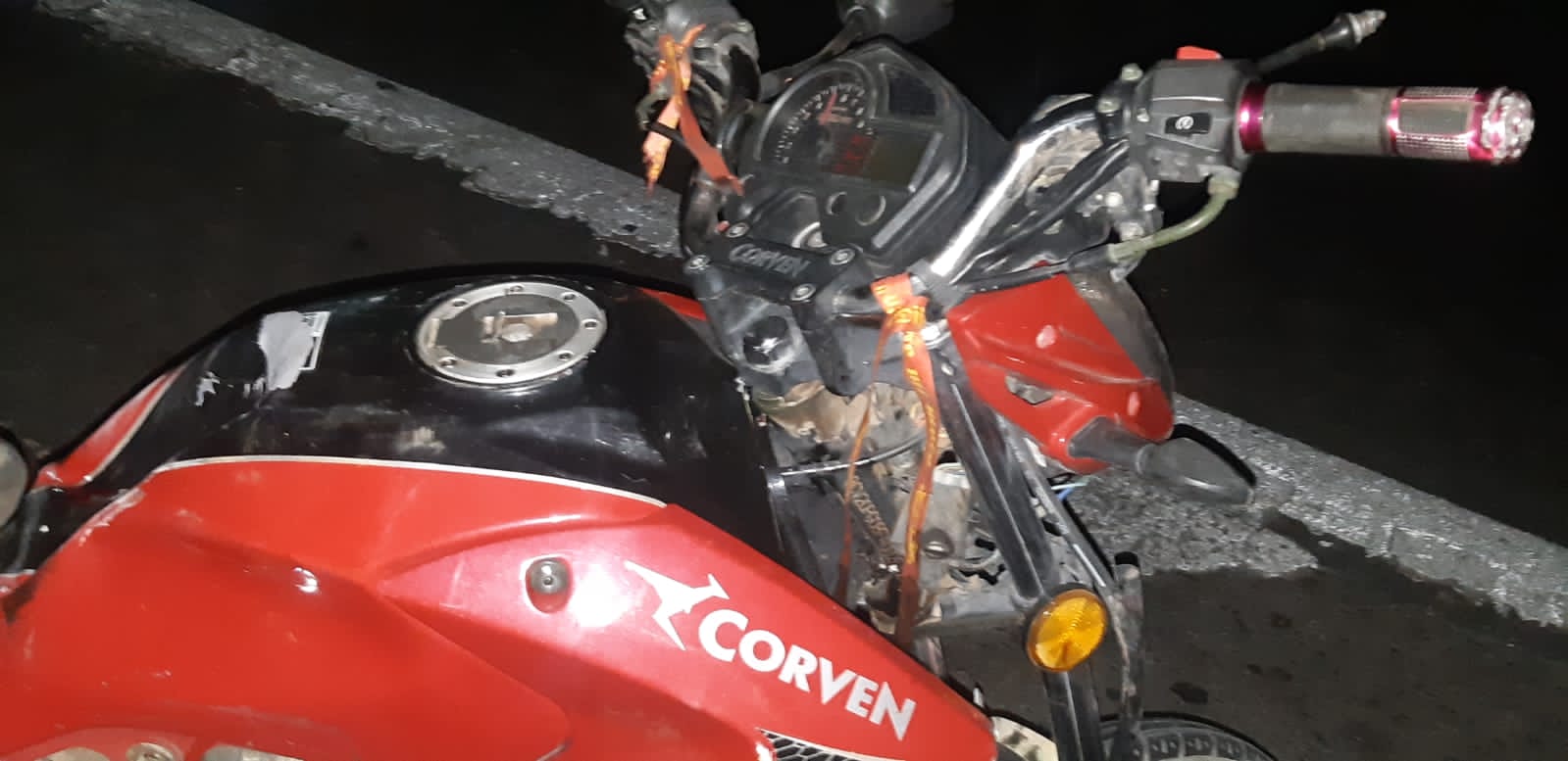 En la noche de este viernes se produjo un siniestro vial en Ruta 20 en la localidad de Las Chacritas. Una moto, marca Corben 200cc, impactó a un Renault 21 que estaba estacionado en la banquina de la ruta pero según los testigos en el lugar del hecho, tenía puestas las balizas.
