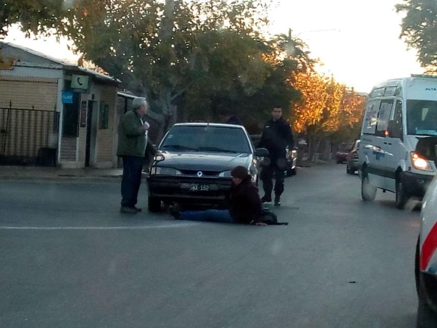 Cerca de las 18, un auto chocó en la equina de calles Salta y Pasteur con una moto. Producto del impacto, el motociclista quedó debajo del Renault.