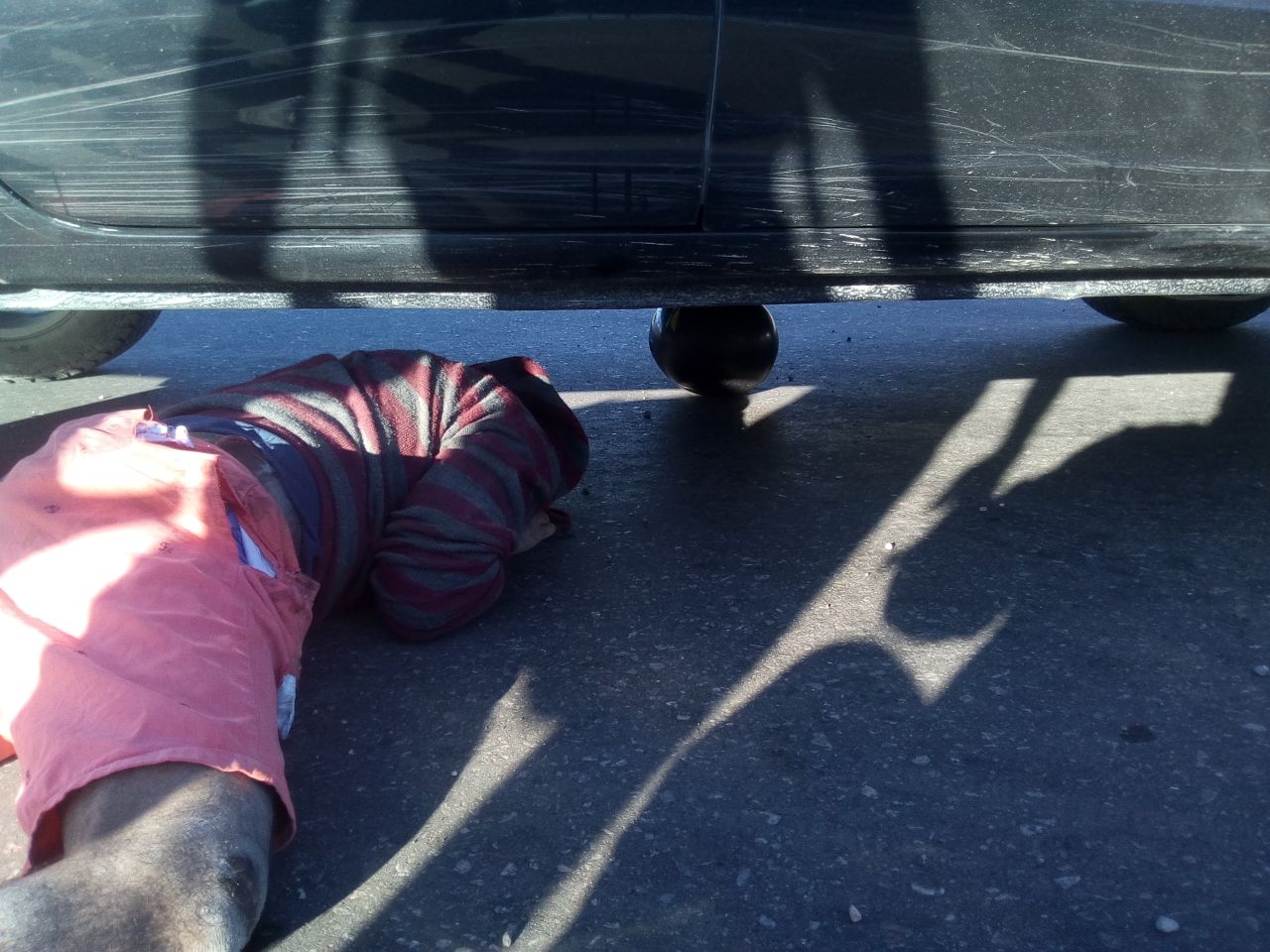 El motociclista quedó debajo de la camioneta con politraumatismos y raspones. Tuvo que ser llevado al Servicio de Urgencias del Hospital Rawson para controlar si tenía golpes graves.