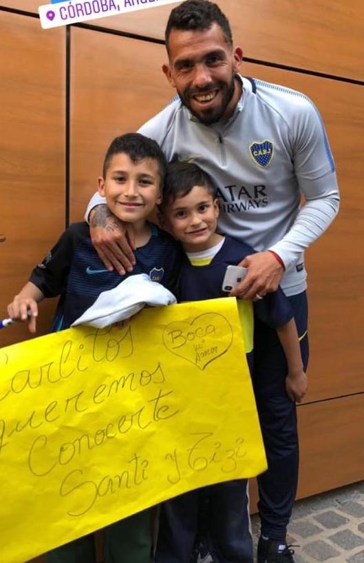 Si algo caracteriza a Carlos Tevez es su humildad. Los constantes gestos para con los hinchas que lo esperan en los hoteles en los que concentra Boca así lo demuestran. Y si esos hinchas son niños, los gestos se agigantan. Santino Flores es un pequeño sanjuanino, hijo de Alejandro, líder de la banda Omega.