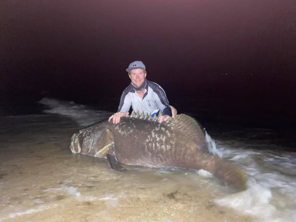 Un australiano del estado Queensland pescó un, un mero gigante (Epinephelus itajara) de dos metros en una tenaz lucha para sacarlo del agua que duró unos 15 minutos.