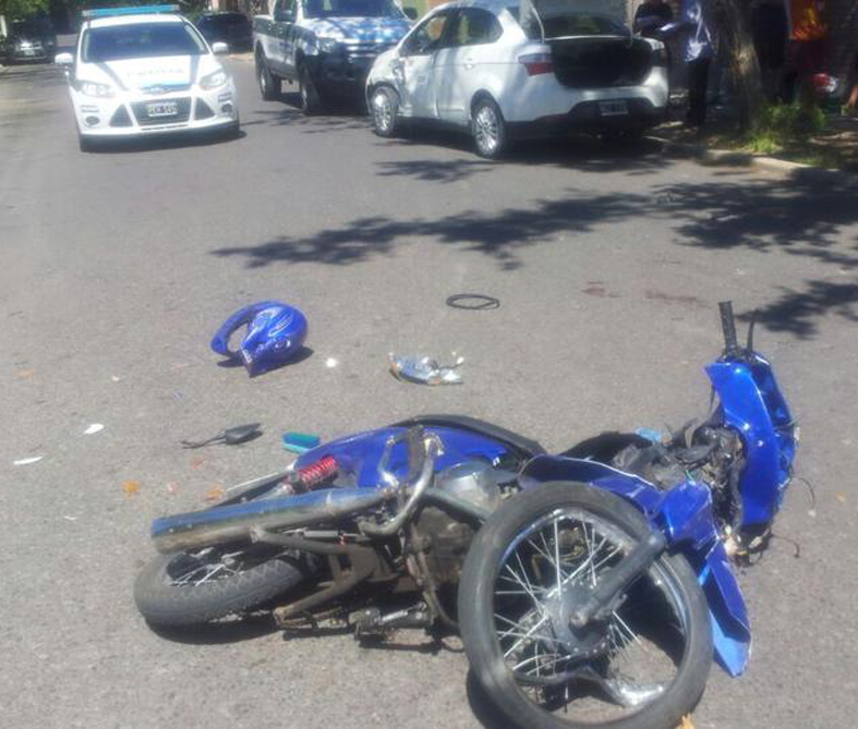 Un policía que se dirigía en moto a cumplir servicio en la Base Palermo en el barrio homónimo en Desamparados, Capital, terminó a las 15 del domingo con fracturas en su fémur, clavícula y costillas del costado derecho luego de protagonizar un violento choque en Ángel de Rojas y Juan De Dios Flores (cerca de su lugar de trabajo) con el Fiat Siena guiado por Rubén Castro (53). El policía gravemente herido fue identificado como Enzo Galván (24), dijeron fuentes policiales.