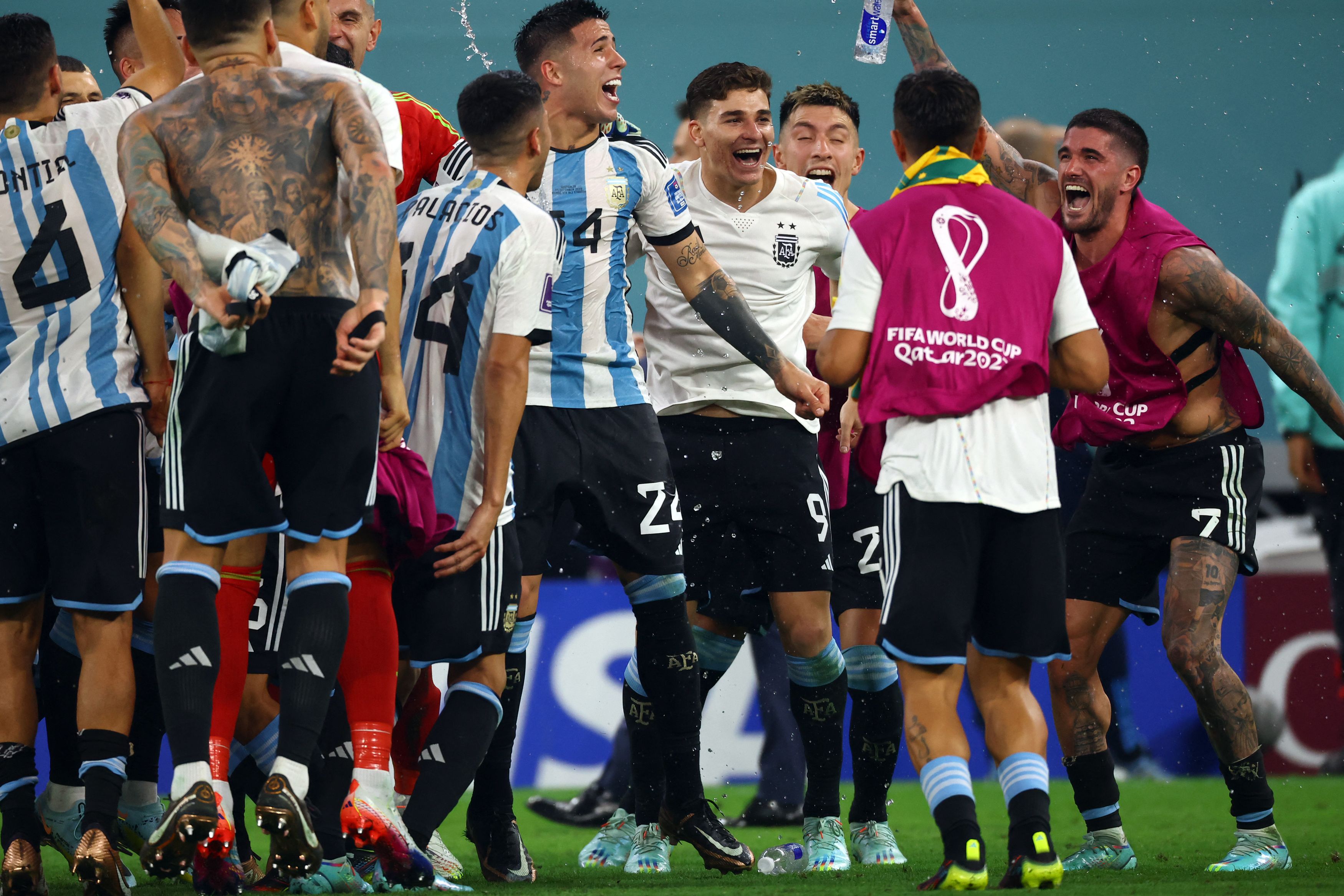 Casi que no había llegado al área rival Argentina hasta que comenzó aparecer ese plus que siempre se necesita. Vino el zurdazo tremendo de Lionel que tranquilizó los ánimos en el seleccionado y en esos 10 minutos que quedaron del primer tiempo, los argentinos se animaron a ir por más. Enzo Fernández fue otra vez el alma del mediocampo, Rodrigo De Paul, que sigue sin demostrar el juego futbolístico que siempre lo caracterizó, esta vez compensó cada crítica en cada corrida y sin entregarse nunca, volviendo a ser el motorcito del equipo. Marcos Acuña también hizo un desgaste enorme y ni hablar de la dupla de centrales que conforman los "muros", como son Cuti Romero y Nicolás Otamendi. Tampoco se le puede recriminar nada -y mucho menos después del gol- a la entrega del intratable Julián Alvarez, que se las ingenió para intentar provocar algo entre la marca de los gigantes centrales australianos. Para el "Dibu" Martínez, marche un monumento. El arquero tuvo "la" atajada del Mundial en ese minuto final. Era gol de Australia y con eso el empate hubiese calado profundo en el ánimo del plantel argentino, pero el Dibu lo evitó y todo Argentina lo gritó como un gol.
