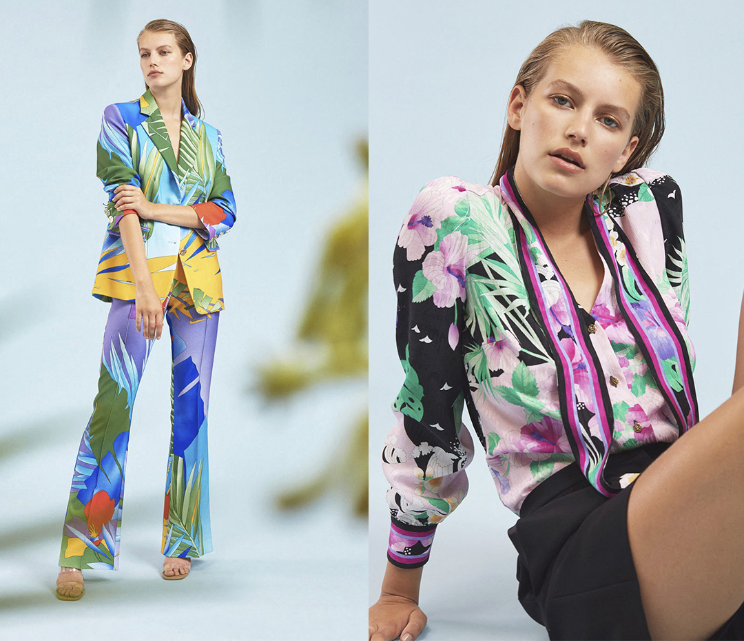 * El estampado tropical se reinventa con motivos estilizados de flora y fauna, pero con reminiscencias arty. Las hojas se depuran a favor de las criaturas de la jungla que destacan sobre contrastes en color block, mientras las combinaciones de colores brillantes amplifican su calidad convirtiéndolos casi en dibujos animados.