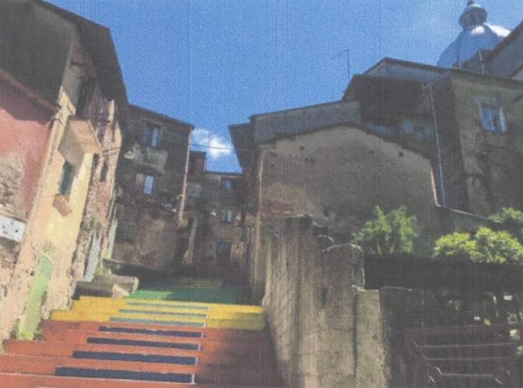La particularidad del edificio Via Carmine, en tanto, es que está ubicado sobre una especie de loma a la que se ingresa únicamente a pie por una imponente escalera bien colorida. Las calles Via Carmine y Chiesa del Carmine son las únicas que posibilitan llegar a este punto de la ciudad, donde las casas están pegadas una a la otra y las puertas dan directamente a esa escalera que hace a su vez de vereda. Debido a que esta propiedad estuvo muchos años sin mantenimiento, sus paredes exteriores fueron invadidas por plantas trepadoras y su frente se fue descascarando con el tiempo. Se encuentra sobre una esquina y cuenta con tres pisos para restaurar. Forma parte del Folio Nº 24 parte 747.