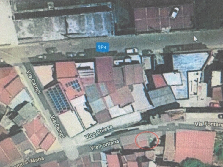 Al edificio Via Chiesa, situado en el centro histórico, se accede a través de un callejón estrecho que queda cerca del Largo Santa María y a poca distancia del Torrente Sciarapotamo. Tiene tres pisos y su fachada está prácticamente destruida, con su mampostería desprendida, al igual que su estructura interior. Requiere de una remodelación bien completa y está registrada en el Folio Nº 24 parte 828.