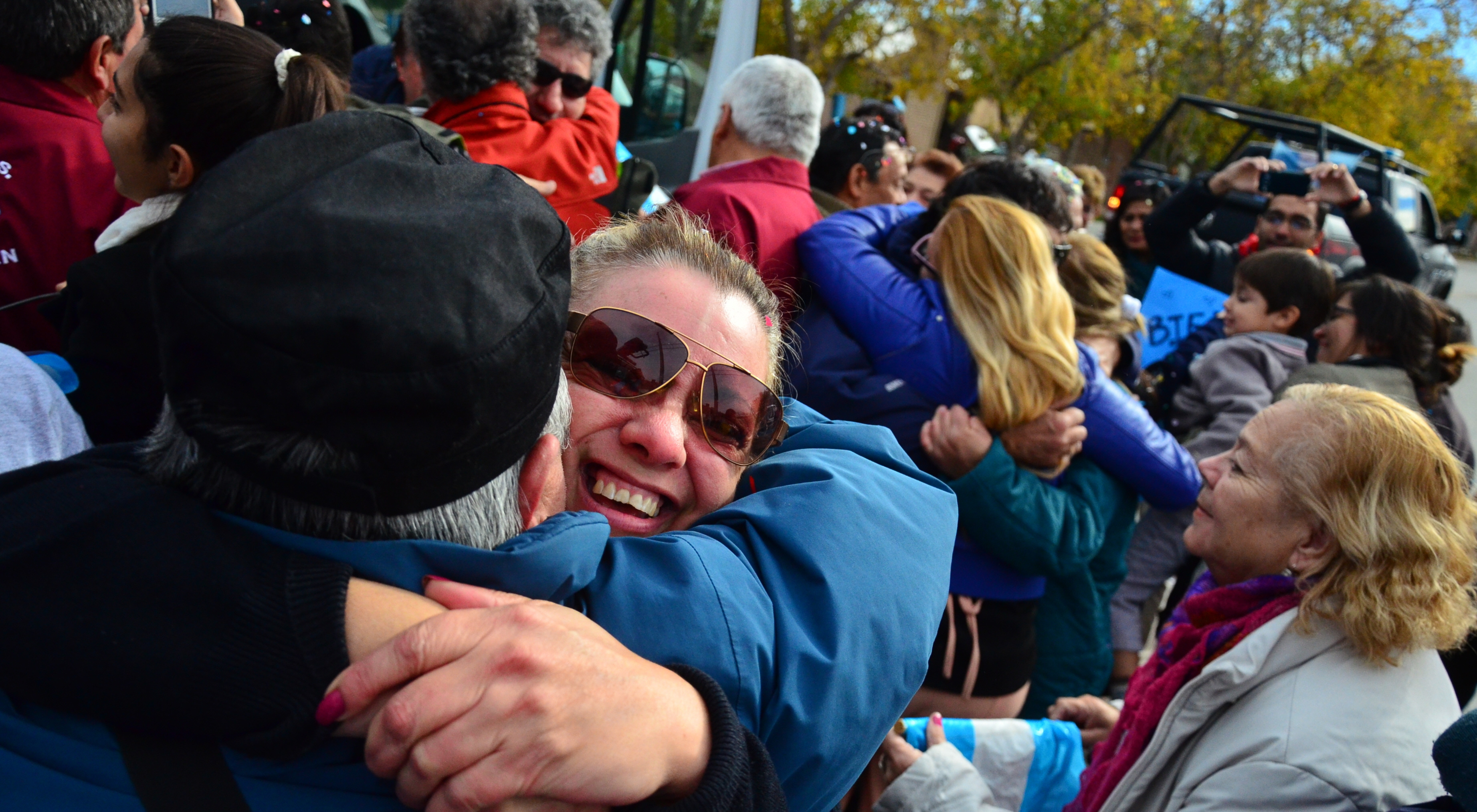 Los familiares y amigos recibieron a los viajeros con aplausos, carteles con frases de aliento y hasta papel picado. Luego los acompañaron durante toda la caravana sin dejar de hacer sonar las bocinas de sus vehículos.