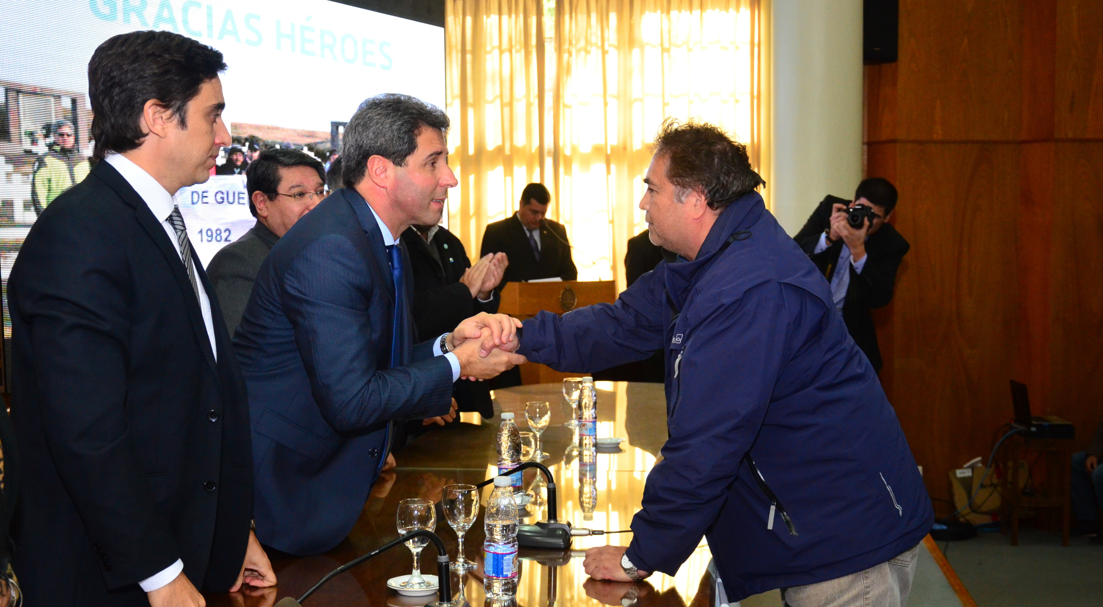 Durante su discurso de bienvenida, el Gobernador no sólo se refirió a los excombatientes como ‘el orgullo de los sanjuaninos’, sino que además anunció que se iba a comenzar a trabajar de inmediato en la concreción del tercer viaje a Malvinas.