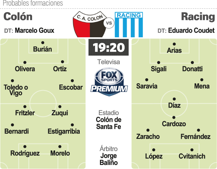 La ‘Academia‘ esta vez podrá contar con el acompañamiento de casi 5 mil hinchas en el estadio ‘sabalero‘. Racing, puntero desde la cuarta fecha, esta realizando una notable campaña con un 80,95 por ciento de los puntos ganados y si no tiene el título a un paso se debe a la increíble campaña de Defensa y Justicia que le hace frente en la pugna por dar la vuelta olímpica con un 76,19 por ciento de los puntos ganados. Cada partido es una final para Racing y no es una frase hecha. No obstante, Racing da la imagen de un equipo sólido y consolidado, que más allá de alguna lesión posee una formación titular que ‘sale de memoria‘ y que encuentra a jugadores, dirigentes y cuerpo técnico unidos en pos del objetivo. Colón tiene 20 puntos, lejos de la chance de clasificar para un torneo internacional para 2020, y será dirigido de manera interina por Marcelo Goux hasta que llegue Pablo Lavallén. Pero la mala campaña quedará de lado y para Colón doblegar a Racing sería un gran incentivo, una sonrisa entre pocas alegrías ya que sólo ganó cuatro de los 20 partidos que jugó.