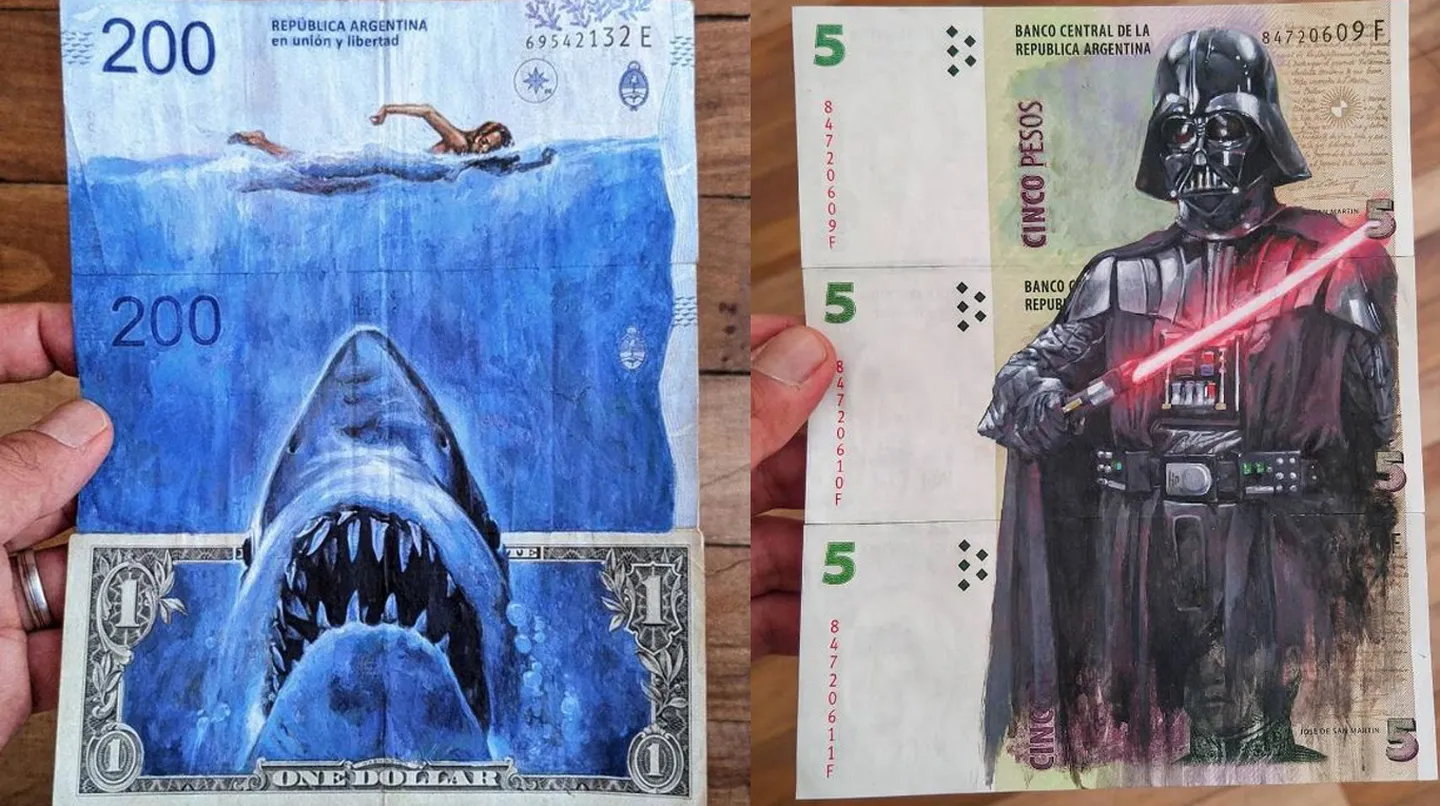 Los billetes argentinos van perdiendo valor a diario por la elevada inflación, pero un artista plástico salteño le encontró la vuelta y transforma esos pesos sin valor en puro arte.