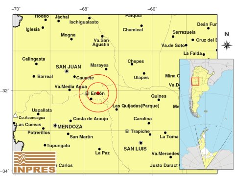 Según el INPRES, el epicentro se produjo a 107 km al SE de San Juan, tuvo una magnitud de 3.5 grados y tuvo una profundidad de sólo 10 kilómetros.