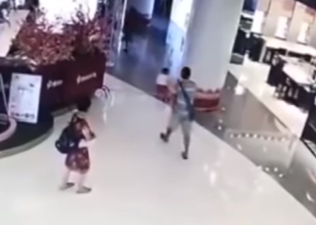 La brutal agresión de un hombre a una nena en un shopping de China quedó registrada por las cámaras de seguridad del centro comercial.