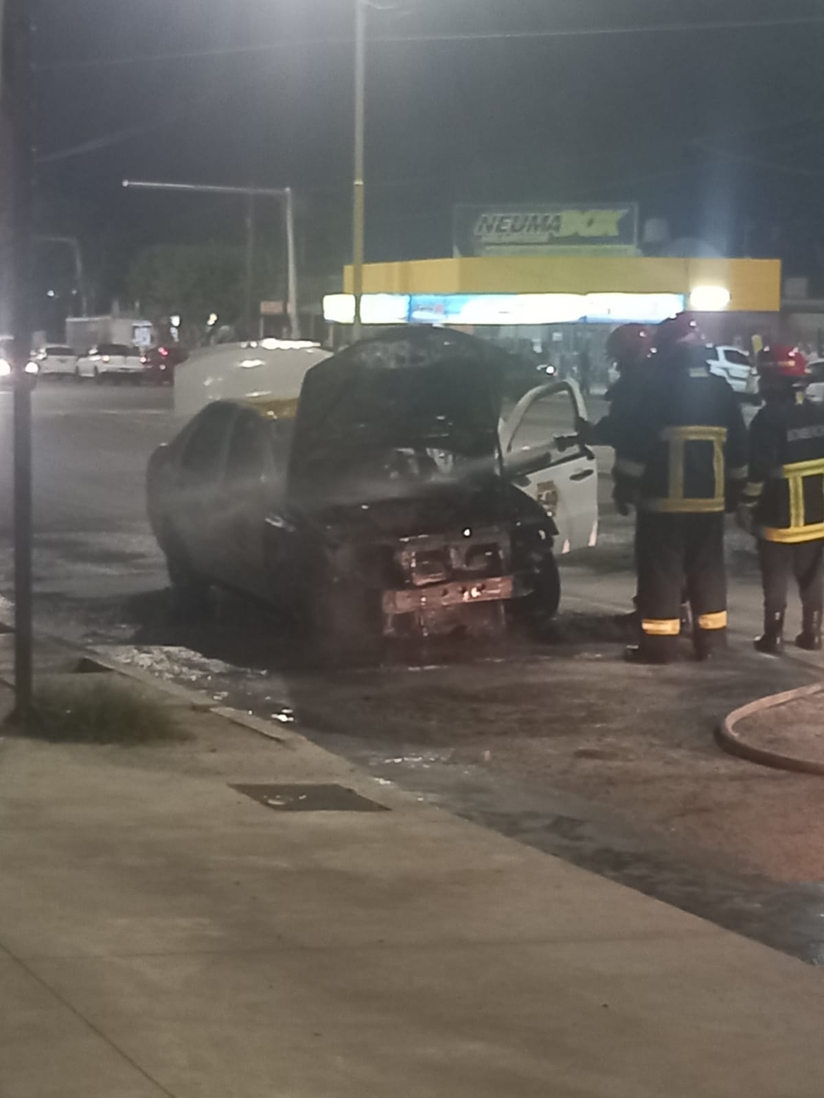 Un taxi se incendió por completo la medianoche del martes y generó temor en quienes circulaban por el lugar.
