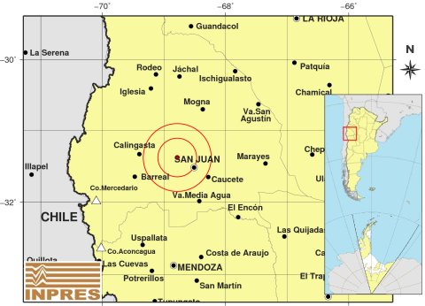 El epicentro se ubicó 57 kilómetros al Noroeste de la ciudad de Caucete.