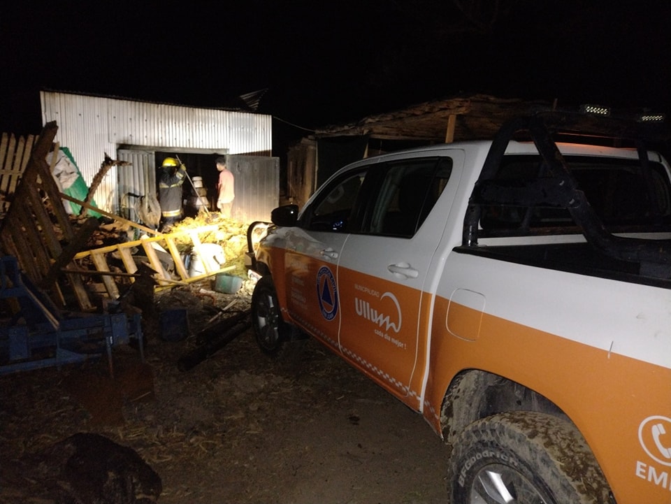 Bomberos Voluntarios y personal de Protección Civil de Ullum trabajaron durante la madrugada de este sábado arduamente con el fin de sofocar un incendio en el interior de un galpón que contenía gran cantidad de fardos de pasto.