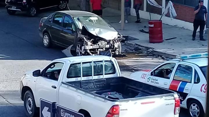 Según informaron testigos del hecho, un auto (en las fotos no se puede observar la marca) circulaba por calle Guemes y, al llegar a Belgrano, impactó fuertemente contra un utilitario Peugeot Partner que iba por la última arteria mencionada.
