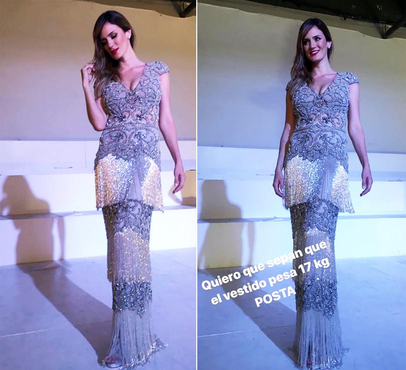 El vestido estaba tan trabajado que, según contó la conductora en Instagram stories, pesaba 17 kilos, literal. ¡Todo un esfuerzo llevarlo!