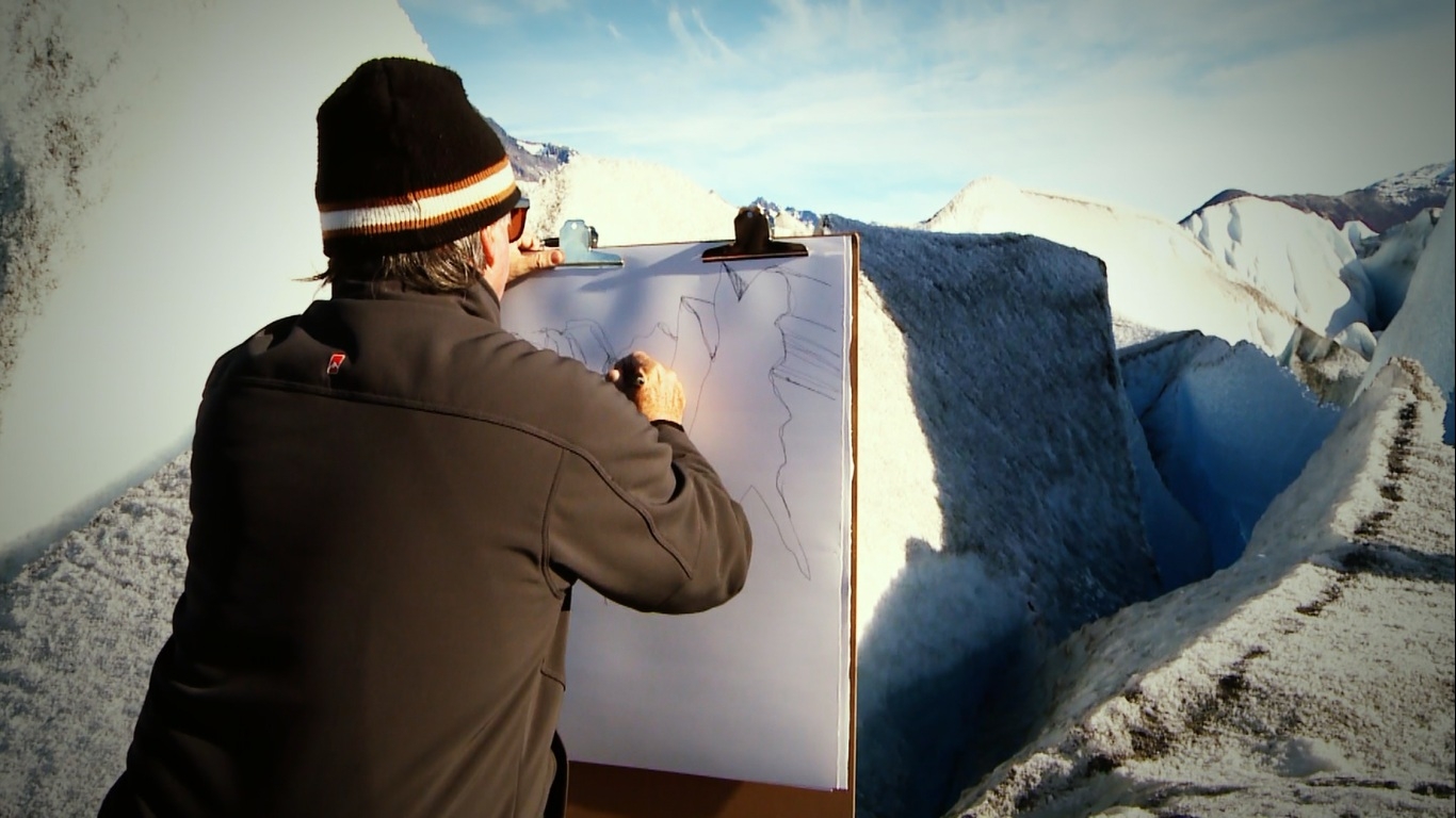 “Quedaba registrar la cordillera helada. Esta vez al pie de uno de los cerros más bellos que conozco que es el “Fitz Roy o Chaltén’ (cerro que fuma como lo llaman los lugareños) como lo llaman los lugareños. Fue una expedición de dos semanas con sus traslados. Fui a Laguna Capri pintar el cerro Torre. ¡Maravilloso!. También pinté en el glaciar Viedma , todo en la Provincia de Santa Cruz”.