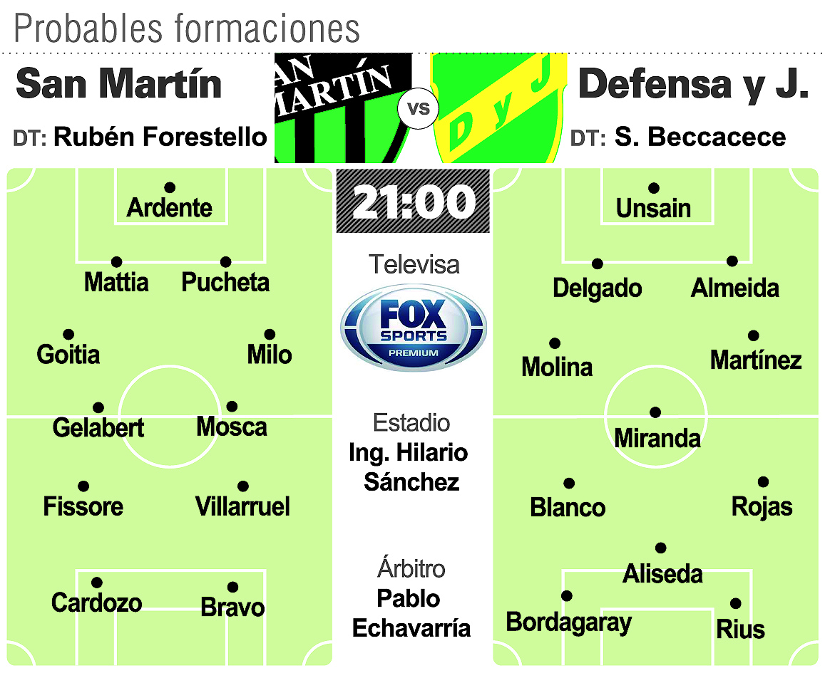 San Martín juega "su campeonato" en la zona baja del promedio. En esta décima fecha de la Superliga hubo algunos resultados positivos como la caída de Belgrano y otros más bien adversos como las victoria de Patronato y el punto sumado por el homónimo tucumano. Con esta combinación de resultados, el verdinegro buscará esta noche (21 horas, por Fox Sports Premium) tomar oxígeno con una victoria ante el Defensa y Justicia de Sebastián Beccacece. Justamente el Halcón se encuentra con la cabeza en "otro lado", más precisamente en el partido del jueves en cancha de Independiente ante Junior por la revancha de los cuartos de final de la Copa Sudamericana donde deberá remontar un 0-2. Por eso es que el exayudante de campo de Jorge Sampaoli en la Selección argentina decidió colocar en Concepción un equipo alternativo, guardando lo mejor para la revancha ante los colombianos.