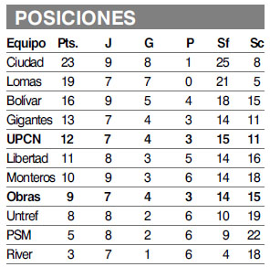 Mientras que en otros resultados de la jornada, el puntero de la Liga, Ciudad, se impuso 3-0 de local a Gigantes del Sur con parciales de 25-23, 25-14 y 25-18, siguiendo al tope de la tabla con 23 unidades. Su escolta a cuatro puntos (tiene dos partidos menos) y único invicto que resta de la competencia, Lomas, superó por igual marcador a Libertad con parciales de 25-19, 25-16 y 25-15. Por último, Bolívar dio cuenta como visitante también por 3-0 contra Untref con parciales de 25-19, 25-20 y 31-29. El actual campeón se encuentra tercero, a siete unidades del puntero.
