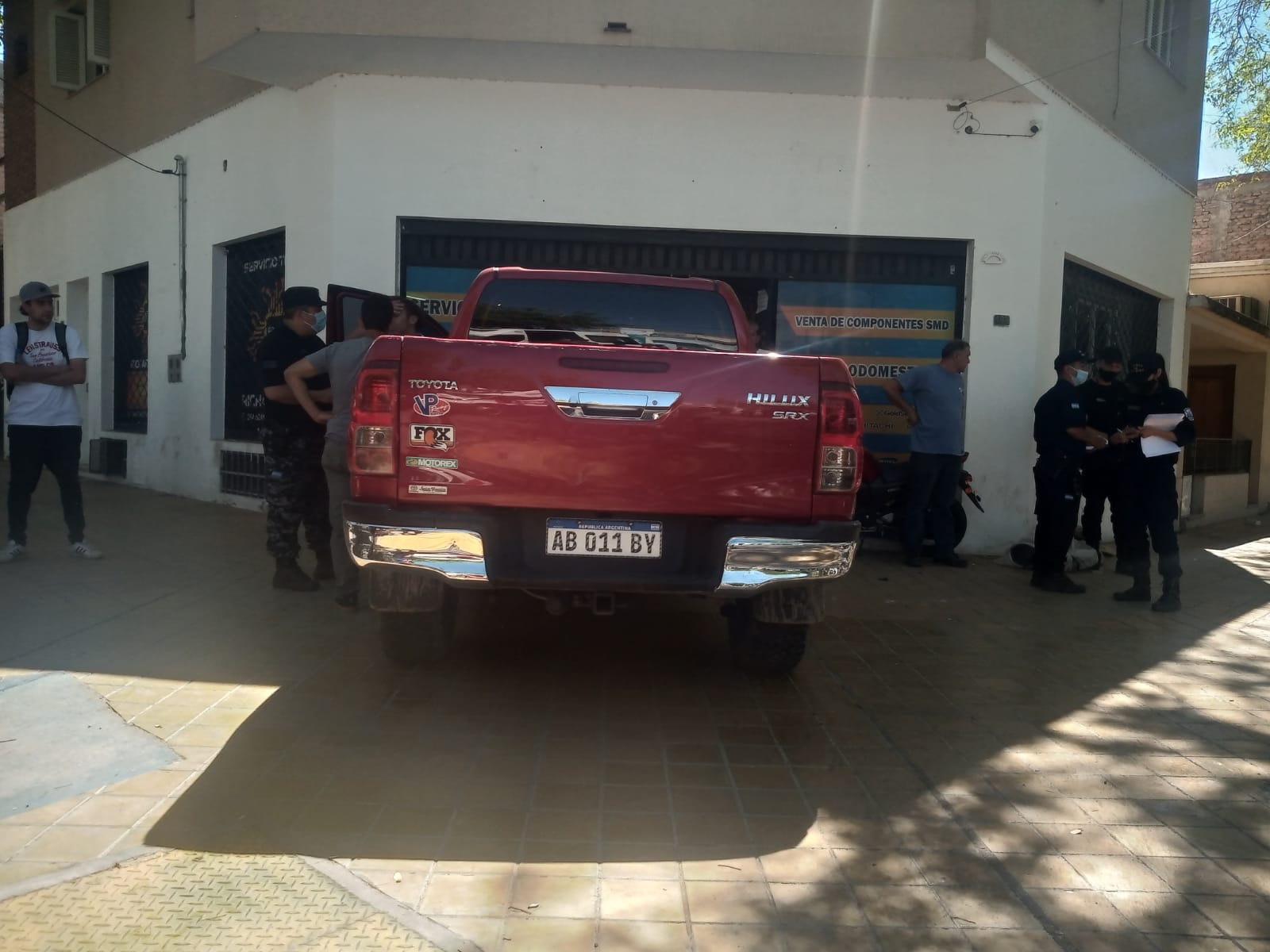 Claramente, ninguno frenó pero sí contaron los transeúntes que en un momento el joven que manejaba el rodado más grande trató de esquivar la moto pero le fue imposible, a tal punto que terminó con la camioneta en la ochava donde esta un negocio de servicio técnico.