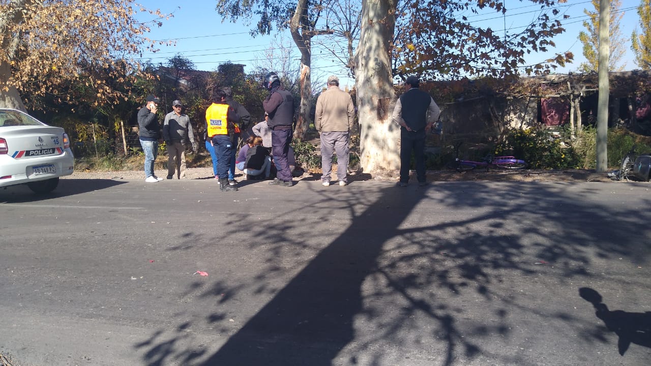Según informaron testigos del siniestro vial, una motociclista intentó entrar o salir a una vivienda (se desconoce aún) a una vivienda de Calle 11 entre Ruta 40 y Alfonso XIII, pero no se dio cuenta de que justo circulaba una camioneta Toyota Hilux.