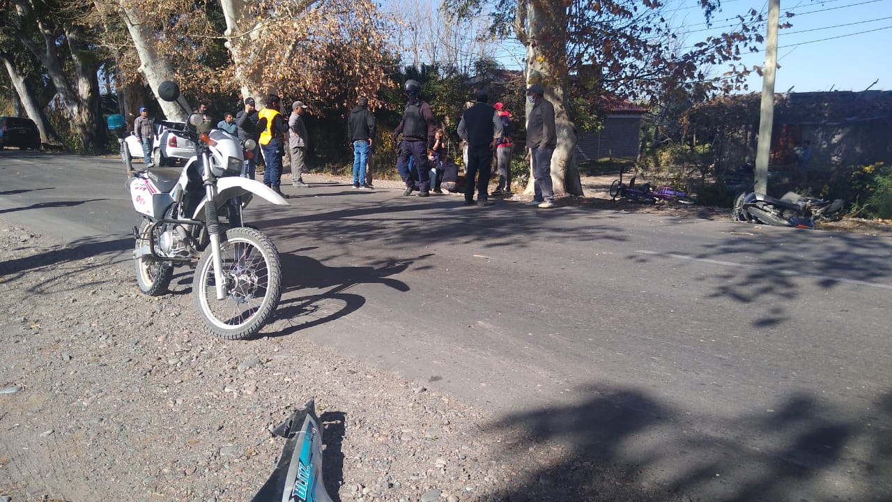 Minutos antes de las 13 de este martes, se registró un violento accidente en Pocito, que dejó como saldo una mujer herida y una moto con serios daños materiales.