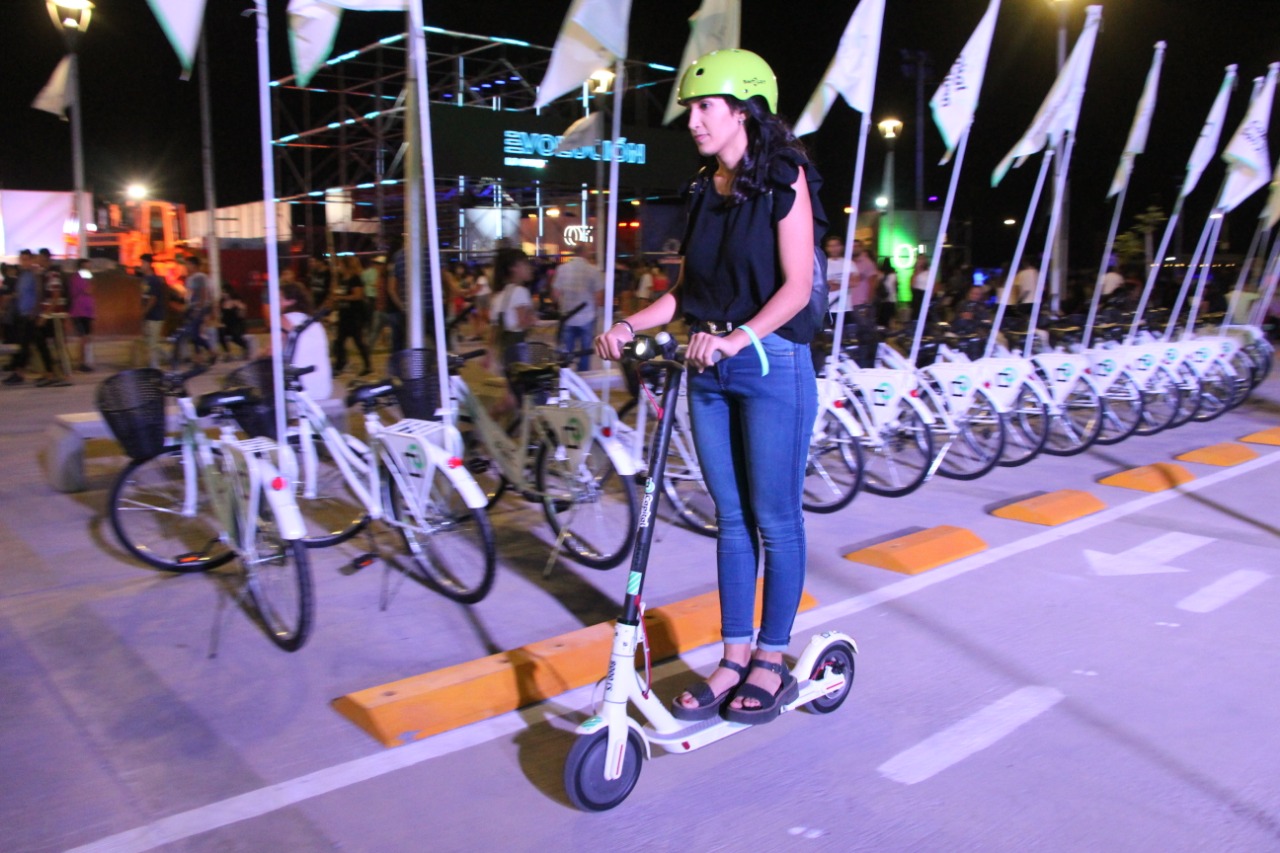 Andan a una velocidad constante y demandan equilibrio y concentración. Se trata de los 25 monopatines que la Municipalidad de la Capital pone todas las noches a disposición del público en la Feria de la Fiesta Nacional del Sol 2020. La gente puede recorrer una réplica de la ciclovía que ya se inauguró en el departamento y que continuará ampliándose.