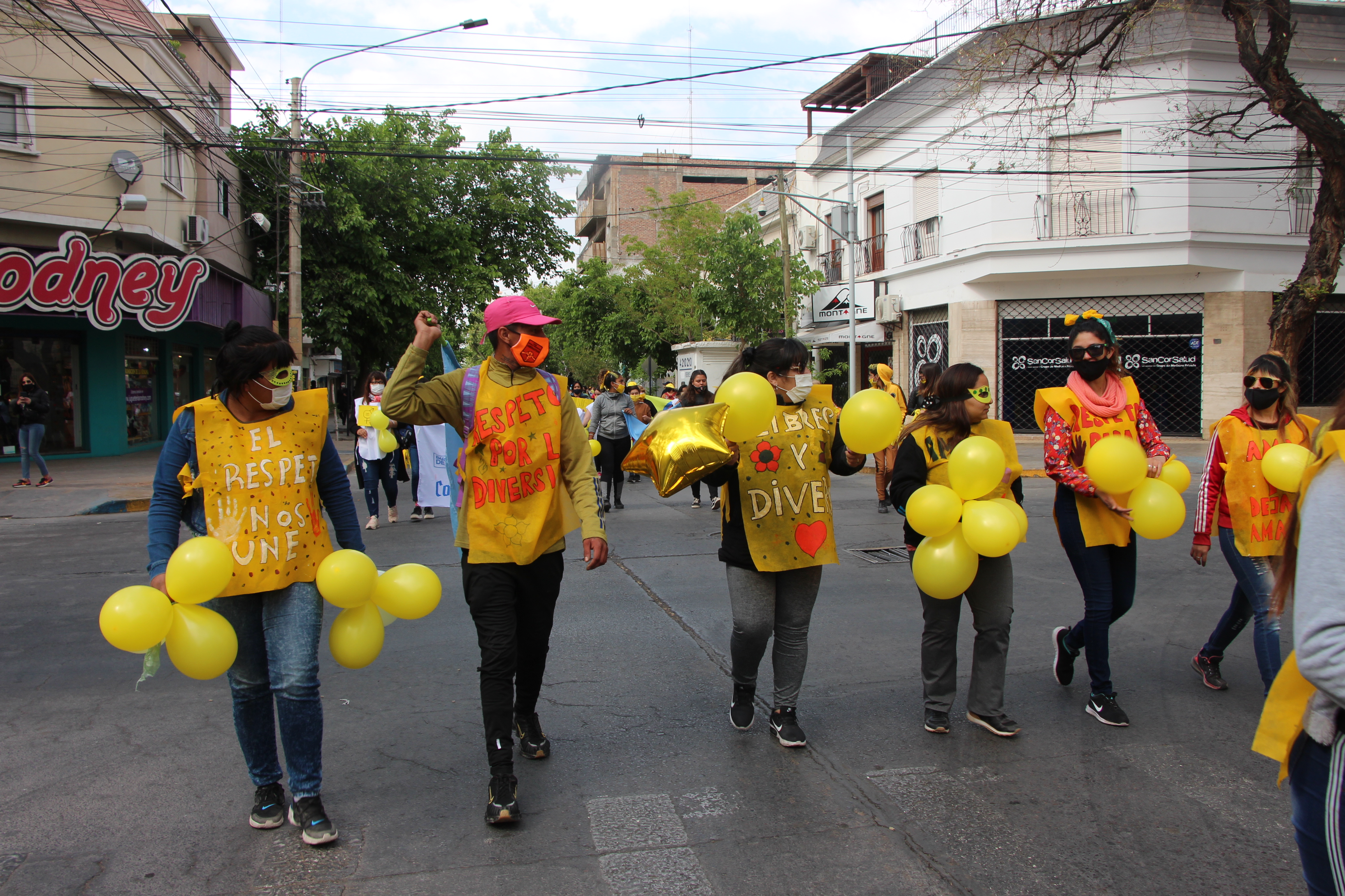 La tranquila mañana del viernes feriado se vio convulsionada en la Ciudad por una colorida marcha en reclamo por los derechos de las personas que integran el grupo LGBTIQ+ y de las mujeres.