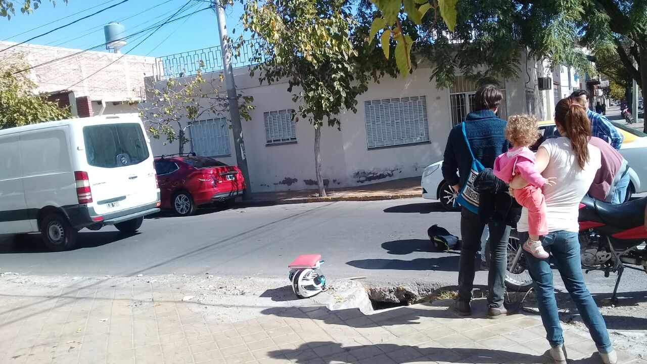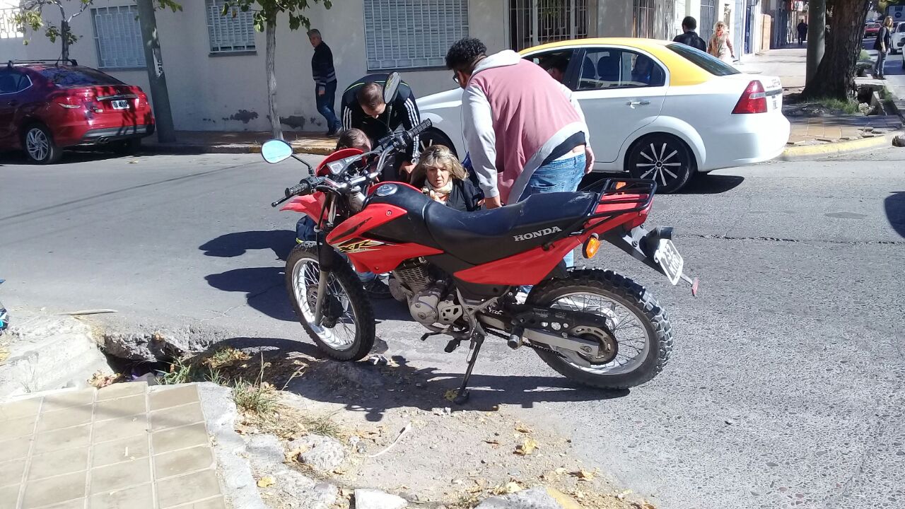 Producto del impacto, la mujer que iba de acompañante en la moto quedó tendida en el suelo y tuvo que ser asistida.