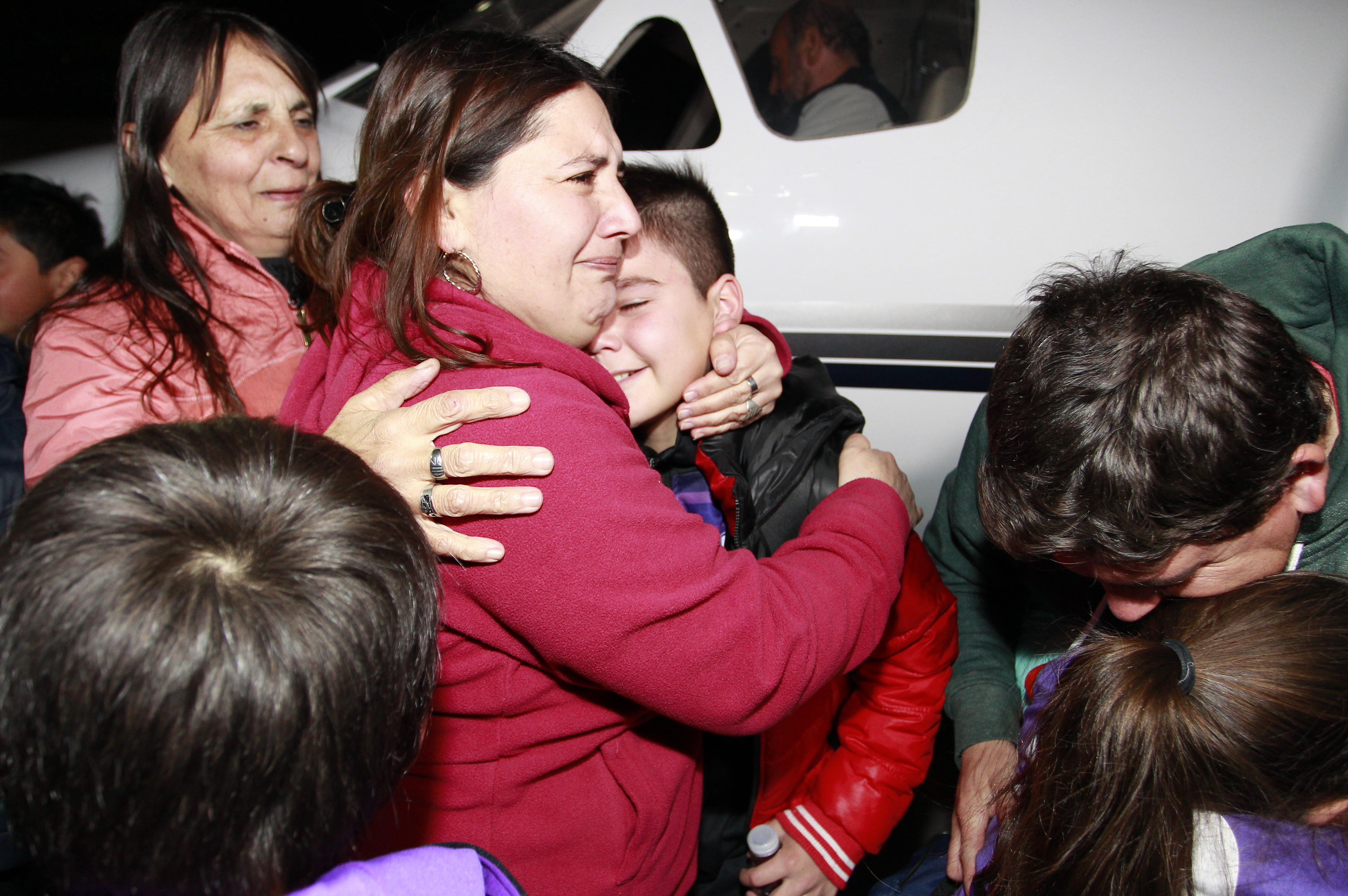 Emocionados. Los padres de los chicos se fundieron en abrazos interminables con sus hijos. Los dos aviones llegaron con unos minutos de separación. Fue un reencuentro intenso y que arrancó lágrimas a propios y ajenos.