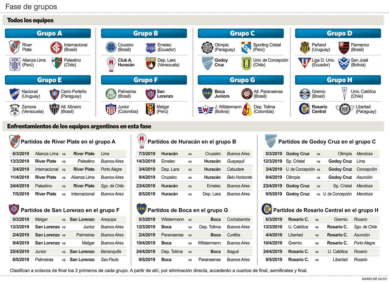 River campeón, Boca subcampeón ya están adentro. Se suman Godoy Cruz, San Lorenzo, Huracán y Rosario Central. Todos con sus presentes a cuestas, con sus momentos particulares, pero sabiendo que serán protagonistas. River, actual monarca, llega con secuelas físicas pero con el ánimo por las nubes tras esa inolvidable conquista que sigue sacando sonrisas entre sus hinchas. Boca, golpeado por esa final perdida, renovó técnico y nombres pero no se suelta todavía. San Lorenzo está en un flojísimo momento, al igual que Rosario Central. Godoy Cruz y Huracán se salvan por la regularidad de sus procesos. Todos saben que la Copa es distinta a todo.