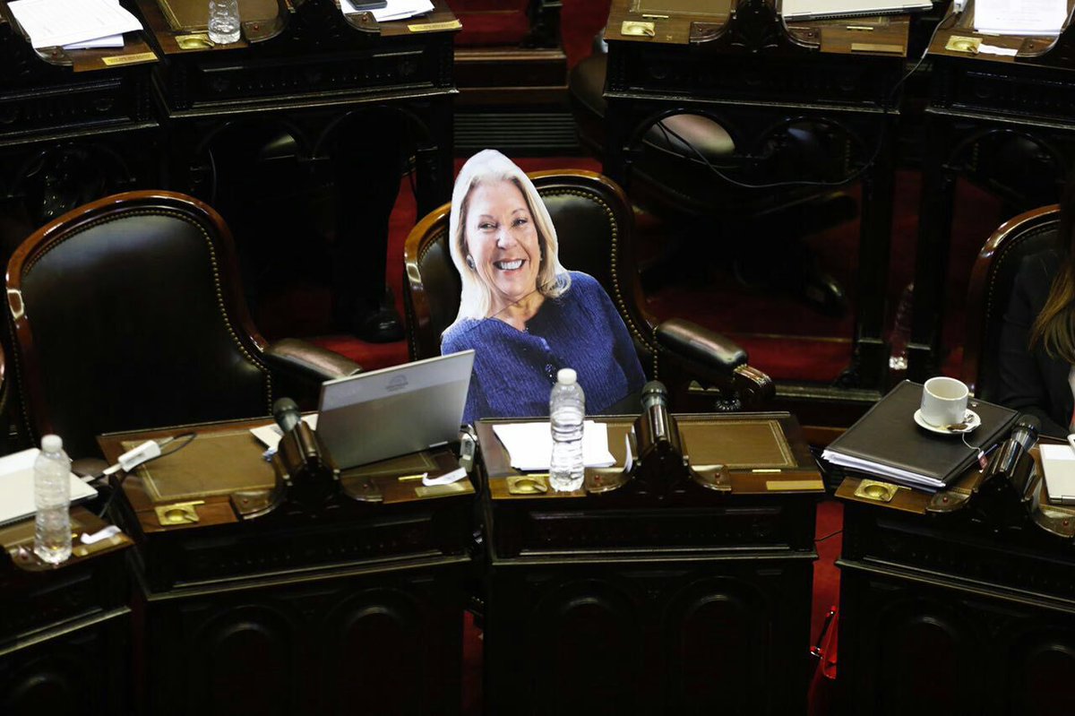 Momento en el que la diputada Silvia Horne saca la gigantografía de Lilita que luego sería colocada en la banca vacía de la chaqueña. pic.twitter.com/TDvipKE0qT— Sergio Villone (@sergioVillone) 10 de mayo de 2018