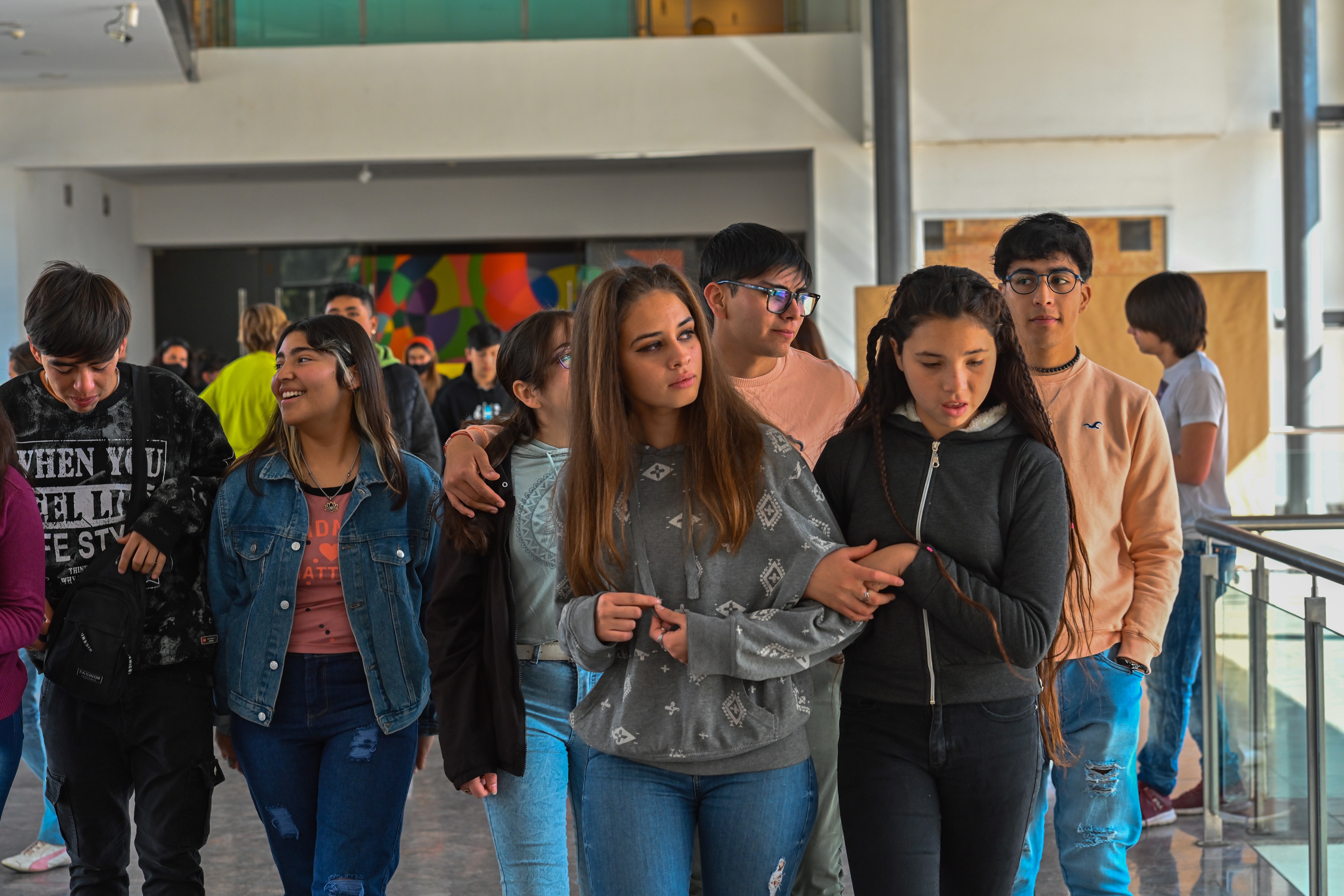 Primero pasaron por el Museo Provincial de Bellas Artes Franklin Rawson, donde recorrieron la muestra “Antología”, de la artista recientemente premiada Graciela Gachi Hasper. Allí expone 50 obras abstractas producidas con acuarelas, acrílicos, crayones e instalaciones. También contemplaron “La Tarea”, de Gabriel Baggio, que reúne una selección de proyectos performáticos realizados entre 2006 y 2017.