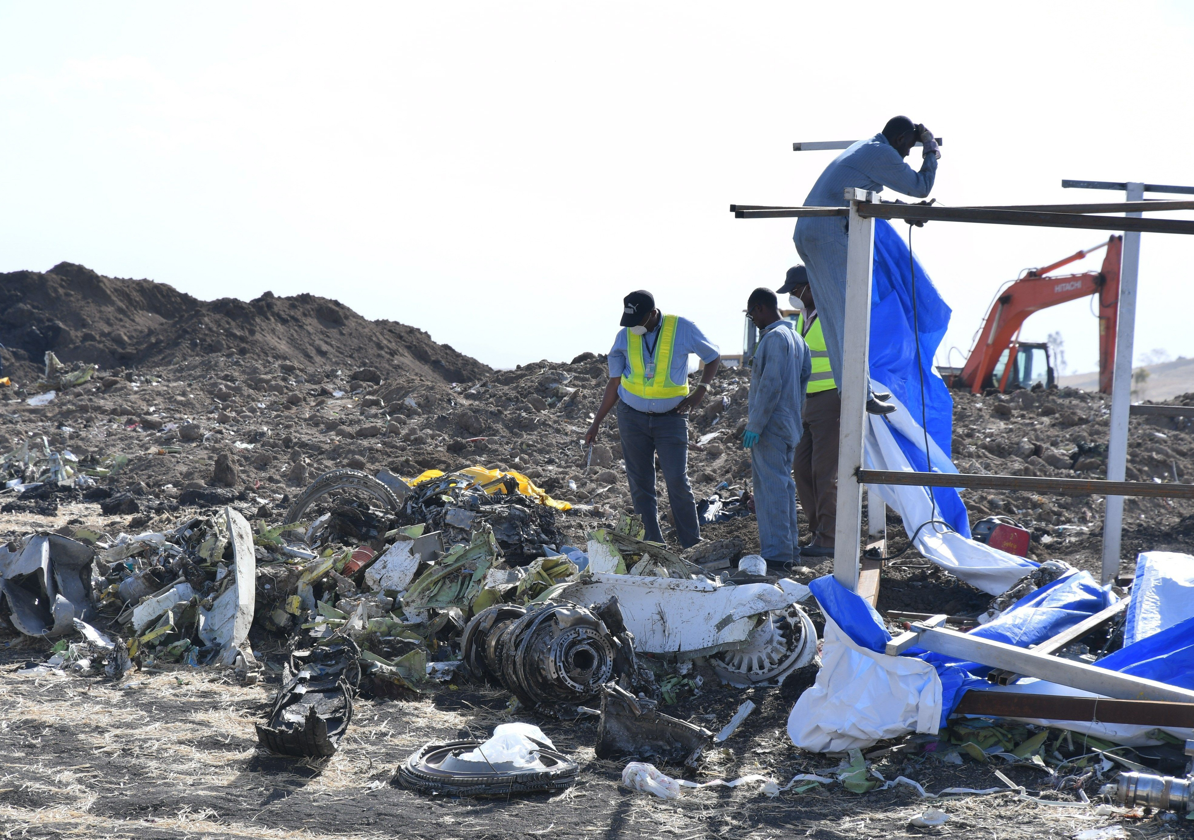 Inspección. Miembros de los servicios de rescate inspeccionan restos del fuselaje del Boeing 737 Max 8 el 13 de marzo pasado.
