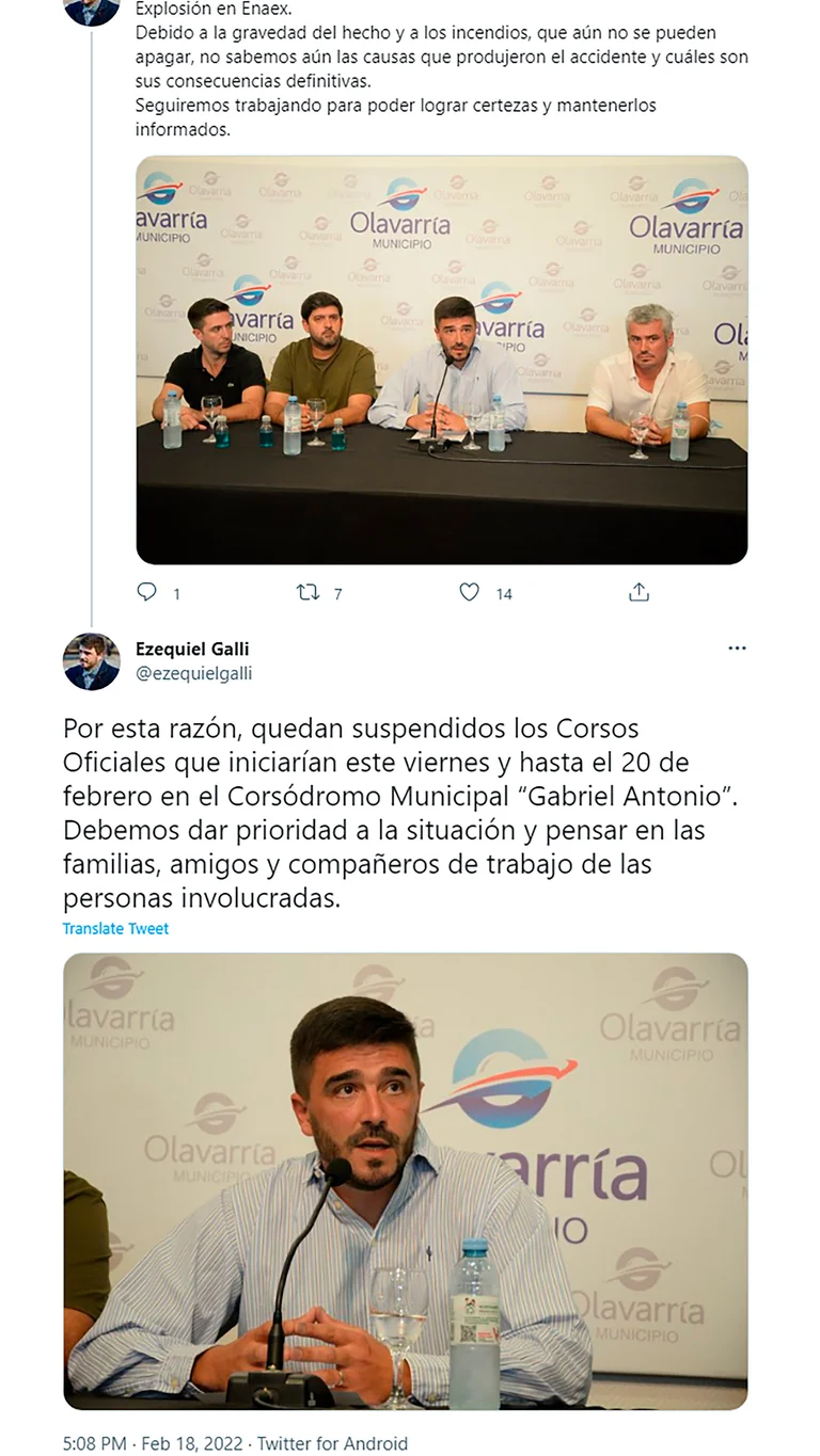 “Debido a la gravedad del hecho y a los incendios, que aún no se pueden apagar, no sabemos aún las causas que produjeron el accidente y cuáles son sus consecuencias definitivas”, comentó el funcionario.