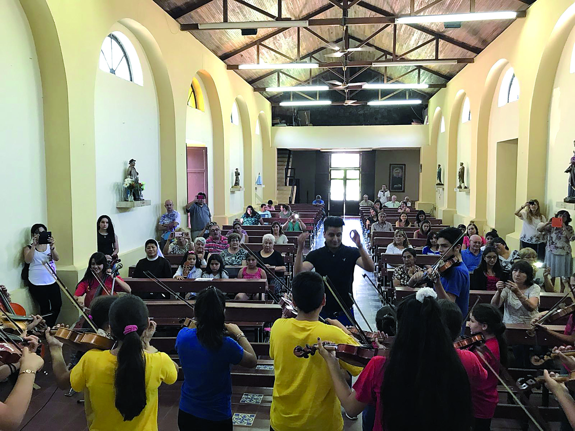 El núcleo Sarmiento fue el segundo en conformarse después de Rawson, lo integran chicos de 7 a 12 años y cuatro veces por semana, tres horas por vez, se reúnen en el Centro Cultural de Sarmiento para aprender y ensayar. “La mayoría de los chicos empiezan desde cero y en la elección de los instrumentos los inducimos según las necesidades de la orquesta, obviamente tenemos diferentes niveles porque están los que llevan cuatro años y los que se incorporaron este, lo interesante es el nexo que la música crea entre ellos lo que incluso libera de las barreras sociales”, explicó la fuente. Al respecto lo graficó con una anécdota: “Hay un par de chicos que son muy amigos, uno es el hijo del dueño de una calera (Fabricio) y otro es hijo de un trabajador calero (Nacho). El papá de Fabricio tiene una camioneta 4×4 pero quien lo lleva cada día a las clases de la orquesta es Nacho en su bicicleta; estos nexos son los que nos llenan el alma”, contó Rodrigo.